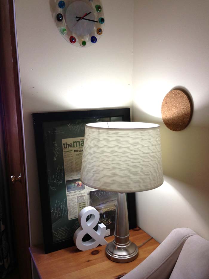 This is one of my favorite details. On the table next to my couch I have a framed copy of The Maneater, the student newspaper where I worked in college. I also placed the copy of New York magazine from Hurricane Sandy. The clock is from an art fair in my hometown.