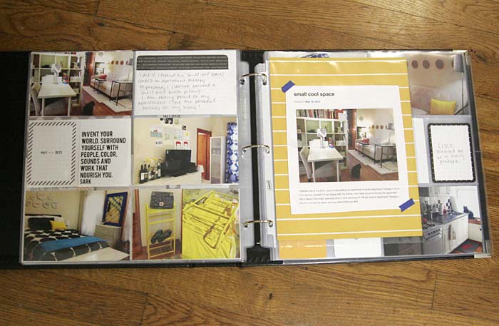 I used an insert for screenshots of my Apartment Therapy entry and for the first page of my blog entry on the contest. The quote cards are available for free here, on Elise Blaha Cripe’s blog Enjoy It.