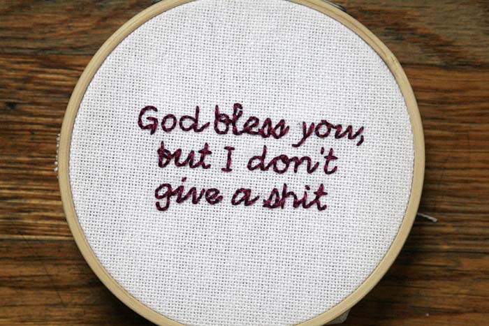 This embroidery is from Under the Dome and, well, has language that’s a little NSFW. Click through the jump if swear words won’t offend.