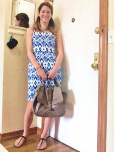 Once you get to work, replace your sandals with some heels and add a blazer. Then realize you never should have kidded yourself about wearing your hair down, look for a hair elastic, and never find one.