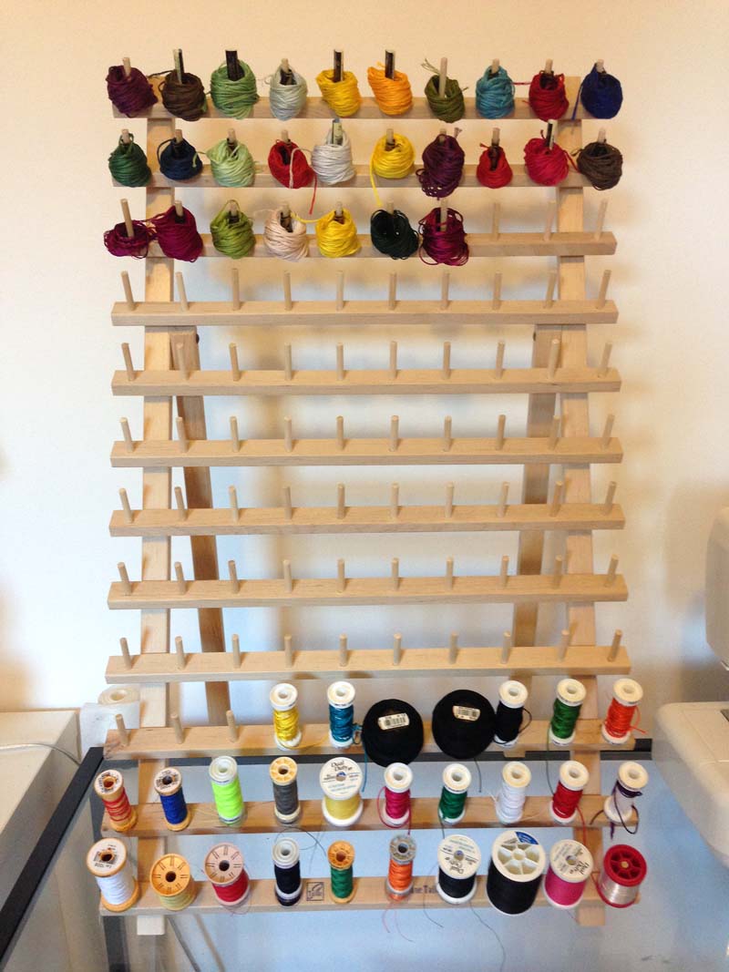 There’s room for a few dressers, and the jewelry rack I made by painting another one of those wooden racks–the same kind you see in the sewing area.