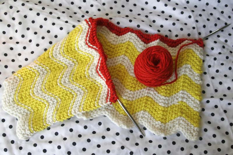 I’m not a very experienced knitter. Before this blanket I think I just knew how to knit and purl. I could knit or purl two together, and I could maybe increase a stitch or two after looking up how to do it on youtube. But for this baby blanket I learned two new stitches (kfb and ssk). And that was all it took to make a chevron stripe and the biggest thing I’ve ever knitted.