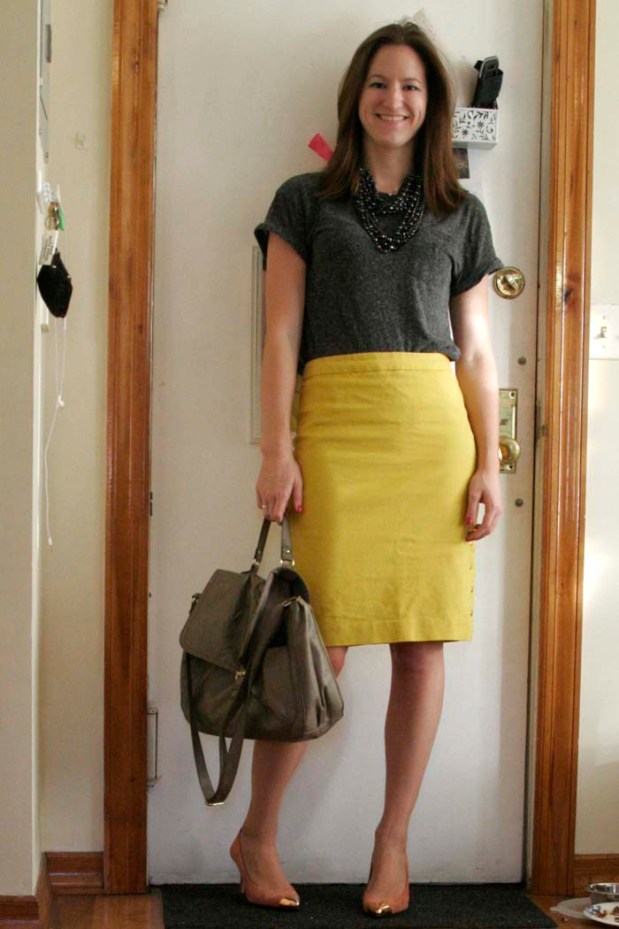 Once you get to work, replace your sandals with some heels and add a blazer. Then realize you never should have kidded yourself about wearing your hair down, look for a hair elastic, and never find one.