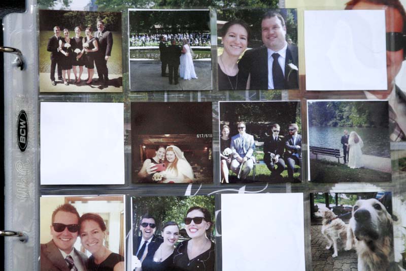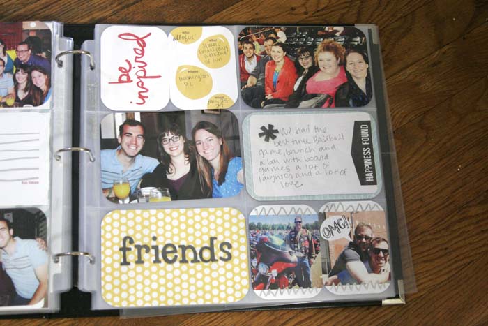 My favorite part of these pages is my instagram picture grid! The bride and groom had an instagram tag for their wedding, and it was a blast to check everyone’s pictures. So I printed some out and put them into a 20-coin protector page. I love it. I have a few little hearts I might put in the blank squares, but I also like it as it is.