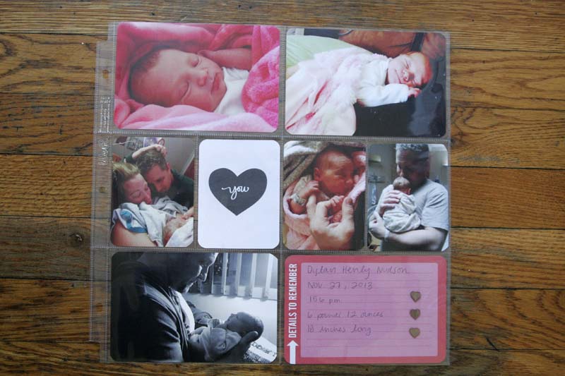 My Project Life catch up is continuing in the cutest way possible. We were lucky enough to welcome a beautiful baby girl to our family in November. My niece Dylan Henly Nudson was born Nov. 27, and these pages are all for her.